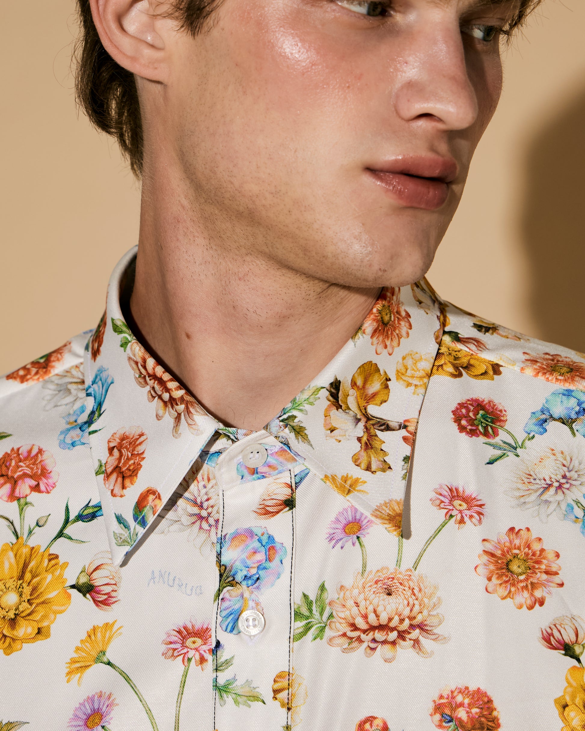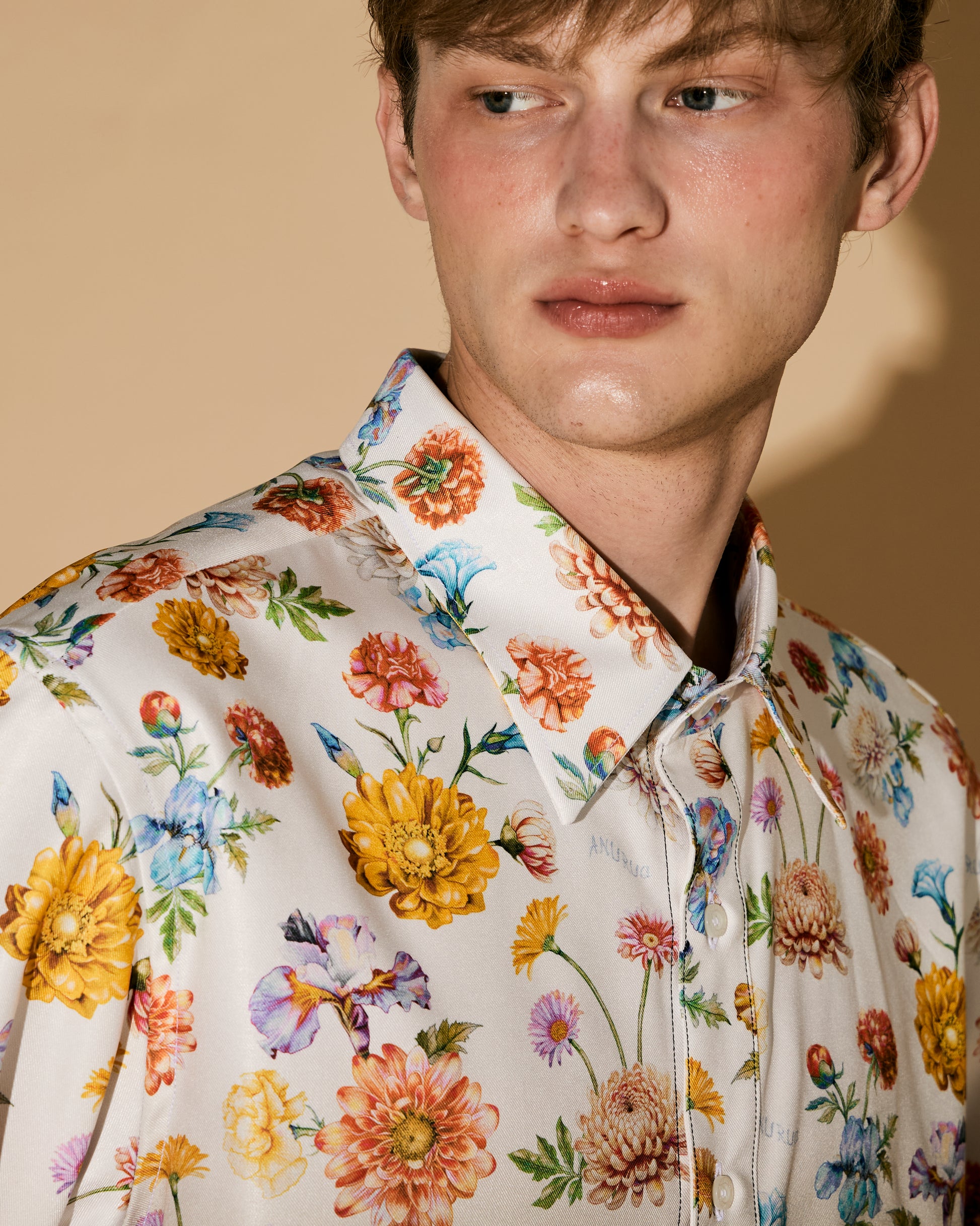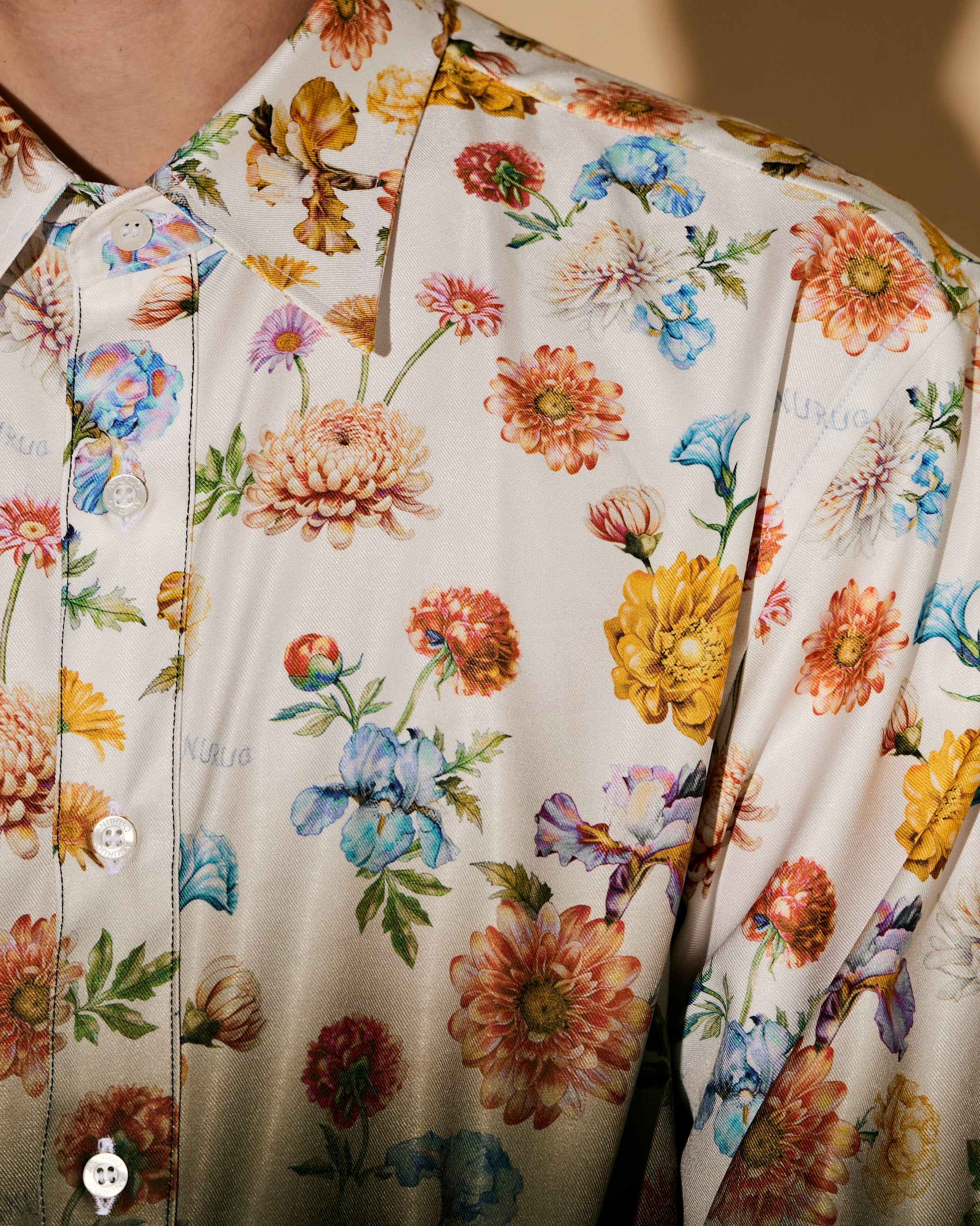 Long-sleeved shirt made of 100% polyester with a digital print featuring a gradient floral pattern.