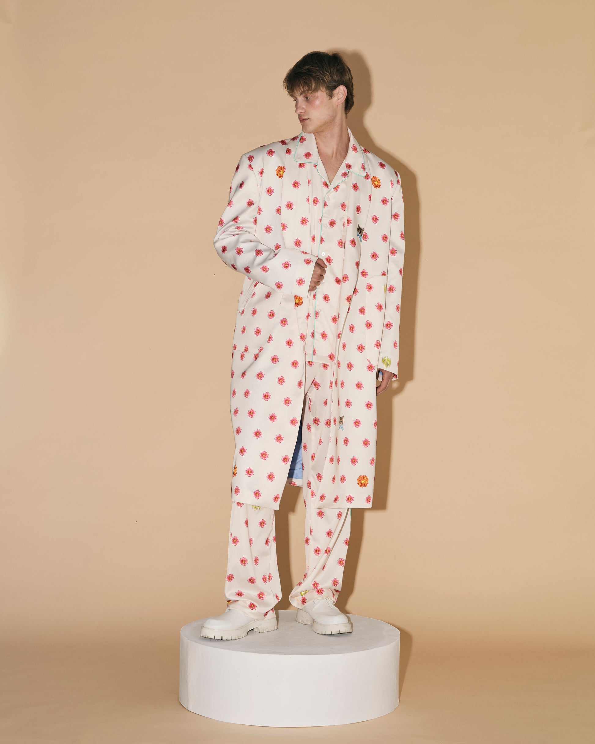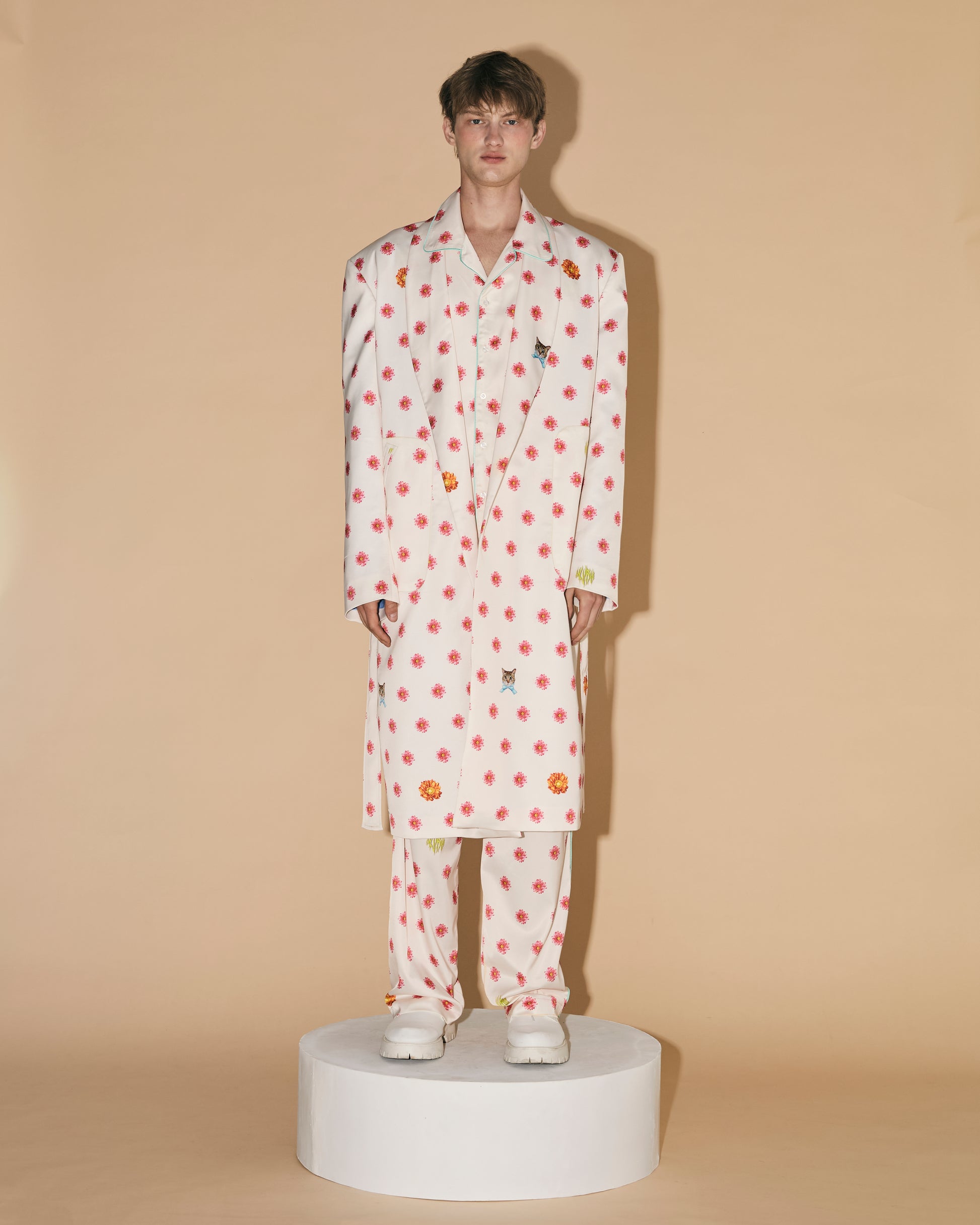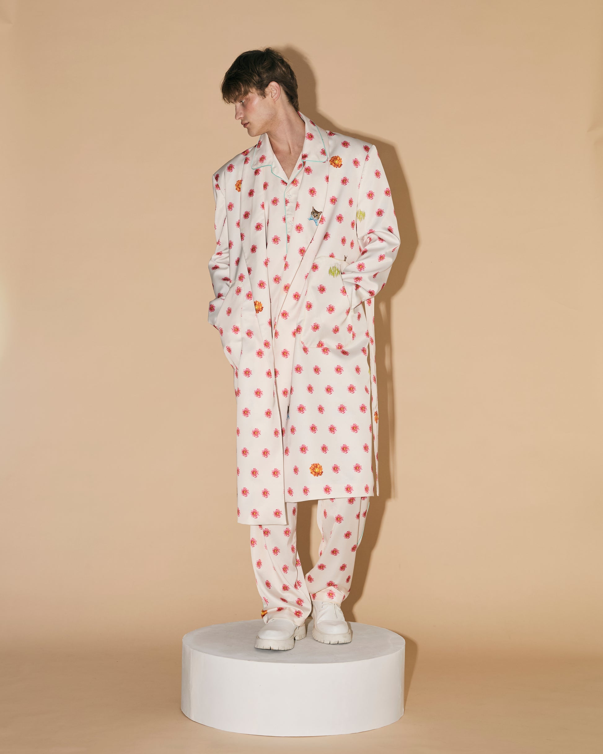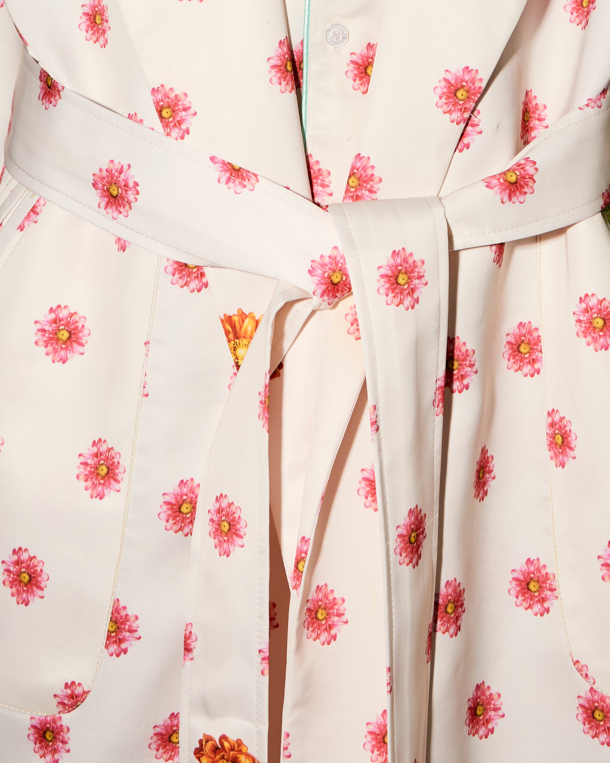 This bathrobe is made from exceptionally soft and lightweight satin fabric, featuring a digital print design and meticulous craftsmanship with piping.